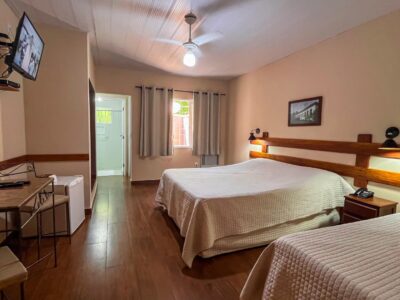 A SUÍTE DO DUQUE É EQUIPADA COM: TV LCD 32”, FRIGOBAR, AR CONDICIONADO, VENTILADOR DE TETO, TELEFONE, Wi-Fi (INTERNET), TV A CABO. IDEAL PARA FAMÍLIA!