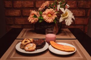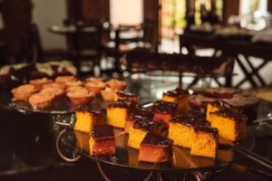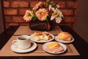 Aos sábados e domingos, desfrute de uma experiência especial em nosso café da manhã! Delicie-se na atmosfera acolhedora da Sala Fazenda Florença com o nosso Café Imperial, uma verdadeira viagem gastronômica aos tempos dos barões. Com uma variedade irresistível, você encontrará uma seleção de chás, sucos, iogurtes, pães frescos, bolos, tortas doces e salgadas, além de rabanadas – mais de 45 itens cuidadosamente preparados. Para os demais dias da semana, não deixe de experimentar o Café Colonial, também repleto de opções deliciosas e variadas.